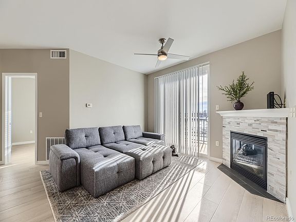 Recently updated condo in a great location. New flooring and paint throughout make the home feel bright and spacious, while the updated fireplace, backsplash, and lighting bring a modern, cozy touch. The open floorplan maximizes the space and offers plenty of room for cooking, entertaining, and relaxing. Amenities include a pool, clubhouse, fitness center, and playground. The unit backs to open space with mountain views from the balcony. Quick access to C-470 and Parker Road, and close to DTC, Broncos Training Center, restaurants and shopping at Arapahoe Crossing/Cornerstar, and more. Enjoy low maintenance living with amenities and a private garage!