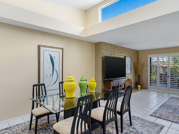 Mid Century Architecture, on Fee (not leased) land close to El Paseo in the Palm Desert Tennis Club!!! 3 bedroom, 2 bath, spacious single level home surrounded by breathtaking mountain views, steps from the pool, spa and courts!!! This home features a spacious kitchen with breakfast bar that opens to bright great room. 2 Large patios, one facing south, the other facing north with fantastic views. New AC unit, on demand hot water heater newly installed (2 months ago). Large master bedroom suite with walk in closet. Additional features included, A beautiful clubhouse with fireplace, billiard room, library (computer and internet access), and fitness center. Palm Desert Tennis club is in the heart of South Palm Desert, it features a 100 unit community and offers the best of active lifestyles. Enjoy 6 swimming pools, 5 spas sitting on 20 lavish acres! HOA fees include tennis, pickle ball, squash and social membership along with eight lighted championship tennis court and on site tennis pro and tennis coordinator during the season. Agent Remarks : Please send PEAD form for showing. and call for appointment Thanks please note the unit has one space shared garage. Manager on site at office for any HOA questions ask for Greg.