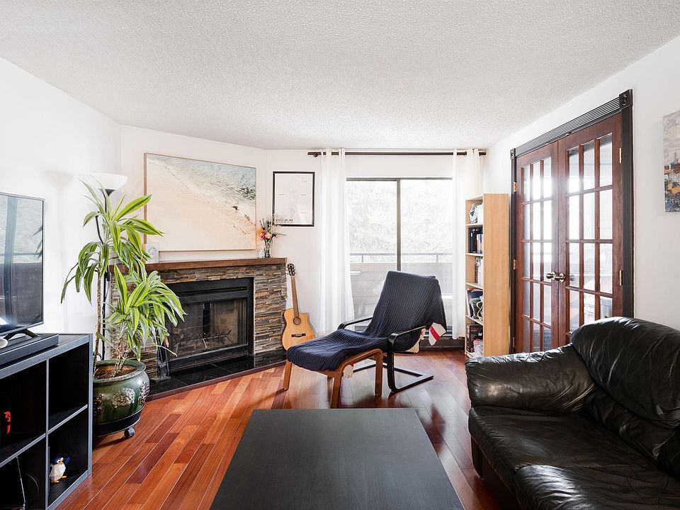 This well maintained 772 SF south facing unit has it all. Featuring an ample sized kitchen w/plenty of storage. Relax in your living room with cozy wood fireplace for added ambiance. The spacious master bedroom offers plenty of closet space. Top this off with a BONUS LARGE DEN that allows you to turn it into a bedroom/office. Updates: newer kitchen w/Quartz counters, backsplash, faucet/sink, LED lighting, Samsung S/S appliance pkg, kitchen cabinets; new lighting in hallway, dining&kitchen; updated bath, vanity, flooring, shower surround, lighting w/dimmer, shower fixture; updated engineered wood floors, etc! Amenities incl gym and outdoor pool. Close to transit, Richmond Center, Minoru Centre, library, schools, etc. 1 Parking&1 Locker. 1 Cat, no dogs. Rentals Allowed. Open Jan 15/16 2-4pm.