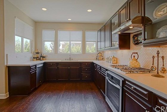 Capture the essence of HOME in a Gated Community! Situated on an Oversized Corner Lot Facing a large Private Park Outside Your Front Door! Approximately 2,100SF of Brilliantly Crafted Living Space.. OPEN FLOORPLAN with LUSH LANDSCAPING on Private Side Yard with Block Walls, Artificial Turf and Pavers. 3 bedrooms plus LOFT, 2.5 Baths. Upgrades include Hardwood Floors downstairs, Fireplace,Solar System - 1.8kW,Basix Countertops with Tile Backsplash and Built-in Stainless Cooktop with oven below, Dark Maple Cabinets with Glass Doors in Kitchen,Very Large Walk-in Pantry... Popular Custom Features include Built-in Music Speakers,Closet Organizer,Epoxy Garage Floor, and Plantation Shutters Upstairs. Great Master Bedroom overlooking the Park in Front of Your Home. Perfect Guest Quarters or office in this Split Floorplan with walk-in closets for all bedrooms. This home is the Perfect Amount of Design,Comfort and Flair! Come to THE ENCLAVE and Start Enjoying Comfortable Everyday Living on a Fabulous Park!
