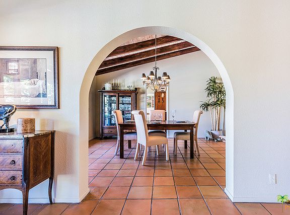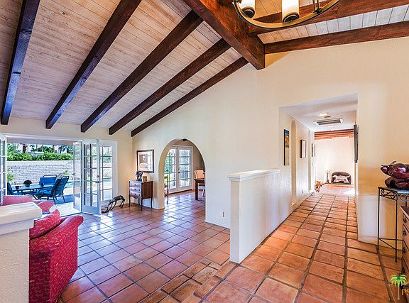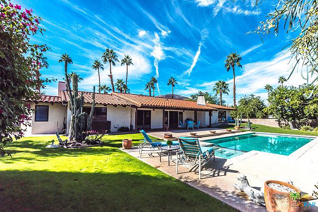Situated a short distance up Highway 74 in South Palm Desert, this CUSTOM property claims both QUALITY and CHARM that should not be overlooked. 72931 Joshua Tree Street features detailed Spanish characteristics such as rounded archways, aged pavers, exposed wood beams, and wooden tongue & groove ceilings. 6 out of the 7 rooms each have PRIVATE entrances, some of which are French-style doors, allowing for cool desert air to enter the rooms individually. The south end of the home has unique qualities such as a breakfast nook, separate dining room, and open space pass-through from kitchen to family room, along with an ADOBE-STYLE fireplace. The formal living room has a DETAILED ceiling, room for entertaining, and views of the large pool area and backyard. The master bedroom is en-suite with walk-in closet, sliding glass doors, and PRIVATE fireplace. All systems on site have been thoroughly maintained and are in TIP-TOP shape, including the SOLAR on the roof. An exceptional must-see! on this property also. Recently freshly painted. The home has 3 hot water tanks; all bathrooms may be comfortably occupied without an issue. Solar lease $215/month; electric is $85/month. The system can be REMOVED at buyer's request or assumed.