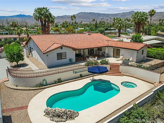 Endless possibilities for this Single Story Pool Home! This location is one of the most desirable well-maintained streets with no HOA in South Palm Desert. The 3036 square ft custom home sits on a 15,246 square ft lot with one of the largest RV parking areas in the neighborhood. The open floor plan has 4 bedrooms and 3 baths and is perfect for any size family. The separate guest quarters with a private bath makes it convenient for your out of town visitors. A double door entry invites you into an enormous family room with a doubled sided fireplace, surround sound, dramatic beamed ceilings with lots of natural light. Entertain with a large wet bar and formal dining room with a fireplace. Bring the chef to enjoy the gourmet kitchen with stainless steel appliances, granite counter, warm wood cabinetry, gas range, electric oven, microwave and trash compactor. Relax in the enormous Primary Suite with access to the back patio and includes two closets, large primary bath with double vanity, separate tub and shower. Additional bedrooms are spacious with ceiling fans, neutral low pile carpet and mirrored wardrobe closets. Hallway bath with double vanity, separate tub and shower area and a door leading to the outside. Refreshing pool and spa with covered patio area, fruit trees, desert landscape and rose bushes. Electric gate opens to a large RV parking area with hook ups. This home has great curb appeal with a circular driveway, two car garage and a gated front courtyard. Just a few miles from El Paseo shops, Living Desert, Hiking trails, public golf courses, and city parks.