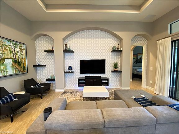 Agent-Owner. A quality construction home from Stock Development includes upgraded cabinets, countertops and flooring throughout house, blackout remote-controlled motorized shades in the master bedroom, Hunter-Douglas window treatments in the rest of the house, elegant light fixtures, LED lights, heated salt water pool, reverse osmosis system and dechlorinated water softener, upgraded closets, custom shelving in the living room, spacious outdoor living area, large lot with a privacy hedge around the perimeter, meticulously maintained.