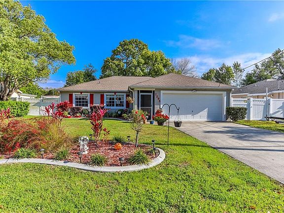 Contact the Official Listing Agent Tracie Maler. Look no further! This home shows pride of ownership! You will see from the moment you enter how clean and well maintained they have kept their home. Open living area with vaulted ceilings and beautiful laminate flooring is light and bright! Large kitchen with breakfast bar, pantry, can lighting, mood lighting, new range,new ceiling fan and tile floors. Master has new paint, new carpet, new ceiling fan, updated shower, faucets, lighting and water-saver toilets. Two bedrooms with laminate flooring and bath in this split plan provide privacy for owner. Inside laundry with cabinets and laundry tub. Your outdoor oasis includes a 12x24 screened lanai; the patio is wired with hook up for your hot tub! Full 6' vinyl privacy fence with single gate on one side and dual gate on the other to accommodate a vehicle. Drip line irrigation in gardens. New Leech field. HVAC 2017. Roof 2006