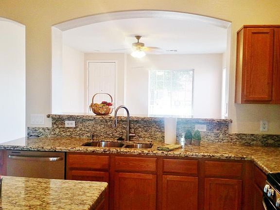The AZ sun shine filters thru the curved arches in the great room of this bright open popular Yuma plan. You wont be disappointed to see the snazzy kitchen. New thick Granite Countertops, Stainless Steel Gas Range, Dishwasher, under mount deep sink w/upgraded faucet & Refrigerator, Island, Pantry & Breakfast Nook round out the kitchen. Lovely living & dining room space. Upgraded oversized tile in kitchen, baths, laundry & hallway, thick quality carpet, separate laundry rm, + 2 extra closets. Master bathroom boasts dual raised vanities, glass door shower, garden soaking tub, roomy walk-in closet & separate toilet room. Outside a paver patio to overlook fully landscaped yard with beautiful trees & garden beds. Cottage style two tone paint & stone accent the exterior of this cul-de-sac gem.
