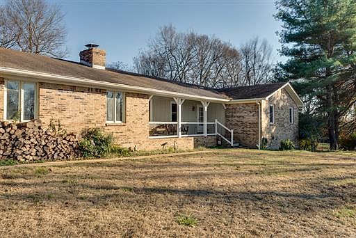 A wonderful 9.8 acre setting for this rustic brick 2130 sf, 3BR 3BA 1 level home. Cozy beamed ceiling living room & kitchen with fireplace. New carpet & paint. Great basement shop area. Lots of potential with this great level land with pond & barns.