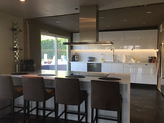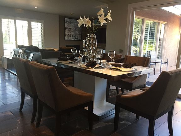 This tasteful mid-century single family remodeled home is situated on a large lot with a pool and mountain views from pool area. The open concept kitchen has been upgraded with high end jenn aire stainless steel appliances and quartz counter tops. Open areas with large porcelain tiles and plantation shutters throughout, include the living room with a modern fireplace, dining area and family room. Master bedroom and two guest bedrooms. Both bathrooms have been upgraded with tile and new fixtures. Epoxy flooring in garage.