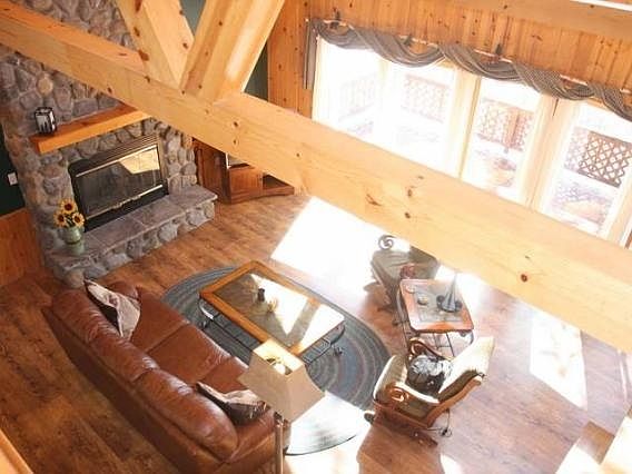 Impressive contemporary prow front home situated on almost 8 acres of land and 164 feet of Lake Mildred frontage. The home offers 4 bedrooms, 3 bathrooms, vaulted ceiling great room, spacious kitchen with center island, second level loft overlooking the main level, and a lower level family room with wet bar. Other features include 2 fireplaces, large sun deck overlooking the lake, 3 car garage, covered front entry, lower level exposed basement and a beautiful wooded lot.