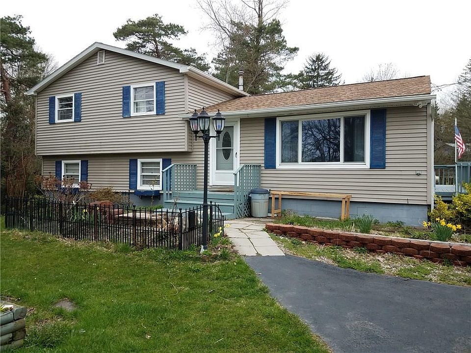 Spectacular location and the perfect home to enjoy the outdoors! 4 bdrm 2 bath split level with full basement, updated kitchen and baths. Central air, Hardwood floor. No garage but large storage shed. plenty of storage space. Extra wide driveway. Walk out lower level. Sliders off the kitchen to good size deck overlooking park like yard with creek. Time to relax! Minutes to golf, parks, expressway. Virtual tour showing only. Buyer to inspect property within 24 hours of accepted offer.