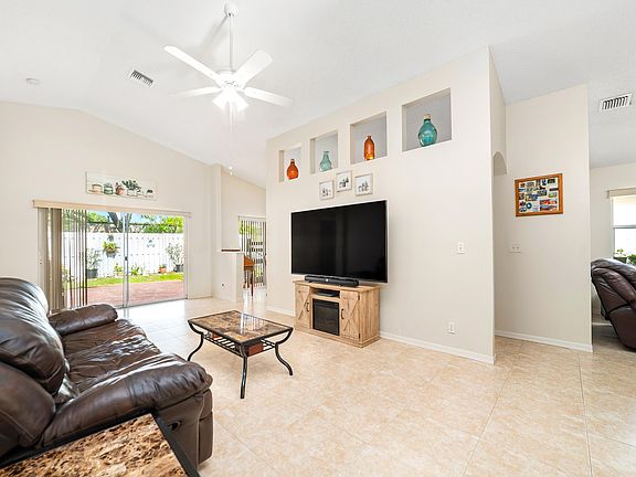 Welcome home to this immaculate 3 bedroom 2 bathroom property located in the highly sought after Spinnaker Bay of Lake Charleston. ROOF 2019 and low HOA! As soon as you enter, you immediately notice the soaring vaulted ceilings and abundant natural light. The entire home boasts tile flooring with large square tiling in the living areas and wood themed tile in the bedrooms. The kitchen was beautifully updated in 2019 with granite countertops, modern cabinetry and stainless steel appliances(2016). The primary suite features high ceilings, tons of space, a tranquil view to the backyard and a large walk in closet. The primary bath offers separate shower, soaking tub and dual vanities. The two secondary bedrooms are of ample size and offer plenty of storage space as well. The property provides full storm protection with accordion shutters(2020) and new impact garage door(2023). New gutters(2019), A/C(2016), large two car garage and comfortable, private backyard round out the highlights. Located in the heart of Lake Worth, this opportunity provides a fantastic location not far from fantastic amenities, gorgeous beaches, shopping and quick access to highways. Please make sure to check out the 3D virtual walk through and schedule an appointment today!