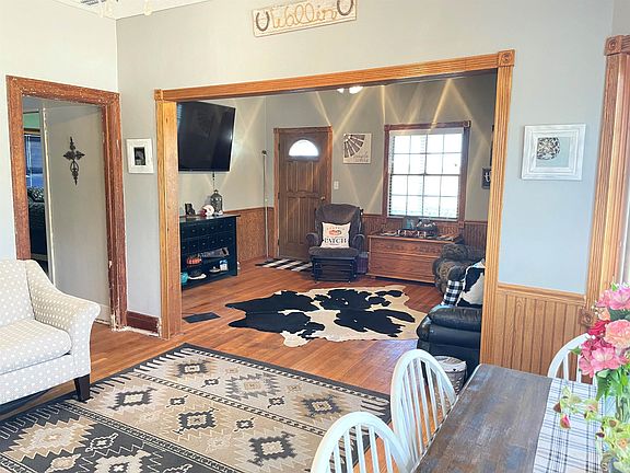 Country living set up for many kinds of livestock. 2 story farmhouse with 4 BDRMs & 1 bath. Newer flooring and paint, mixed with the farmhouse chic that make this an inviting home. 2 plus detached garage with added storage and workbench. Approx. 3-4 acres includes a barn with feed tack room, and livestock stalls. 1/2 shed with 4-10ft wide stalls for vehicle and machinery storage. 2 separate pen areas with livestock shelter lean-to, surrounding shelterbelt to finish out this country acreage. Must see!!