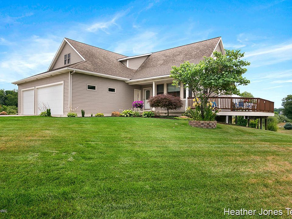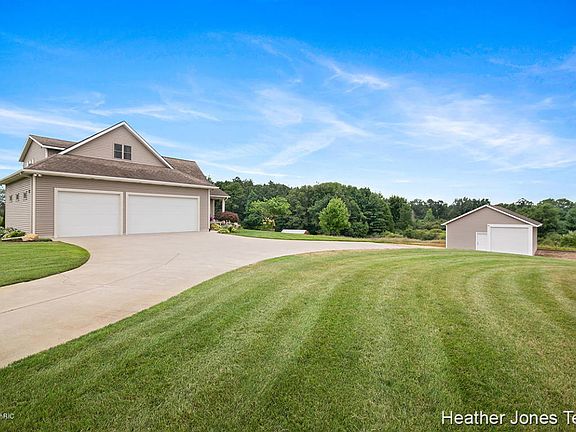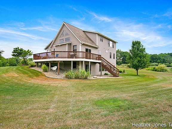 Custom built home on 4+ acres now available in Caledonia schools! This home features large vaulted ceilings, an office, 4 bedrooms including a large master suite with a Jacuzzi tub and huge walk in closets. In addition to this it has 3 more bedrooms and 2 more full baths as well as a newly finished walk out basement! At this home you will also find a slider that leads you to a large (600 sq ft) wrap around deck. You will find an attached 3 stall garage and if that is not enough storage you also have a 24x32 foot pole barn. A beautiful well thought out home placed on 4 acres yet close to M-6 and downtown Grand Rapids. Association fee is $350 annually. Call for a showing today!
