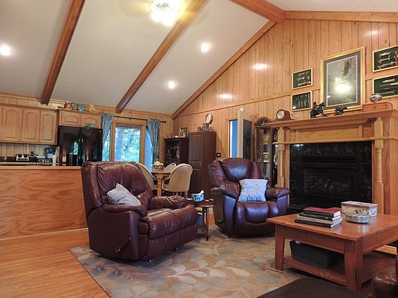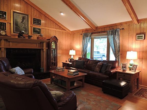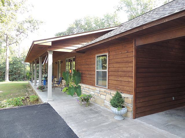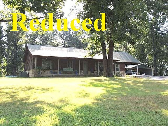 GEORGEOUS 3BR/2BA ROCK & CEDAR SIDING HOME ON 10.4 ACRES M/L. This 1,526 sq. ft. custom built, rustic style home is surrounded by beautiful mature trees and colorful landscaping. The home features an open floor plan with vaulted ceiling, hardwood floors throughout, an attractive gas fireplace and a spacious kitchen with all newer appliances included. The master bedroom has an oversized walk-in closet and adjoining bath with a huge Jacuzzi tub. The third bedroom is 10' 8" x 22' and is currently being used as an office/dining area and has an outside access door. The property includes a 3 car carport, 18' x 6' shop/storage area, a new asphalt driveway with turn-around area and a rustic barn with electricity and wood floors. Other amenities of this home include an 18' above ground pool , 250 sq. ft. deck attached to a 540 sq. ft. covered porch, plus a tree house for children. The wooded acreage has an abundance of wildlife and trails throughout.
