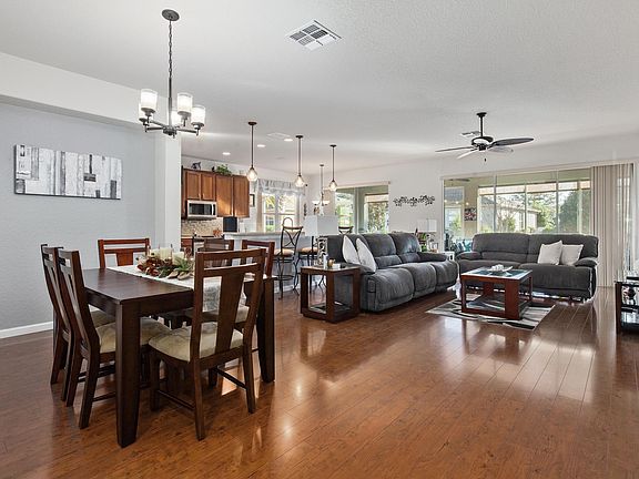Sheridan Model 3/2/2 with many special features and located on a circle so very little traffic and great group of neighbors! Landscaping has been completely finished with paver patio in rear of home to enjoy. Front porch is screened so that you have great air flow thru the home to enjoy the outdoor breeze inside. Garage screen help cool the garage for your handy projects. Once you enter you will notice the wood floors throughout and new tile in both baths, freshly painted, cherry 42'' cabinets in kitchen with upgraded solid surface countertops. Large lanai to spread time enjoying the outdoors rain or shine. But the real upgrades are new HVAC with ultra light, new microwave in kitchen, additional insulation throughout attic, and solar water heater. Much more so come take a good look.