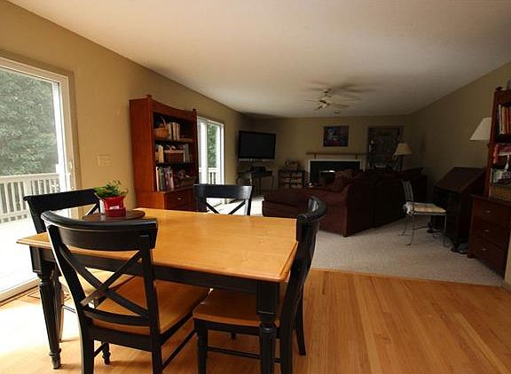 Beautiful Contemporary Colonial with open floor plan with hardwood floors and vaulted ceilings. Light and bright kitchen with new stainless appliances; great for entertaining. Spacious rooms. Family room with fireplace and sliders to deck. Large master suite with full bath and jacuzzi. Main level bedroom with full bath; could be used for inlaw or nanny. Private property with level backyard. Close to shopping and great commuting location.