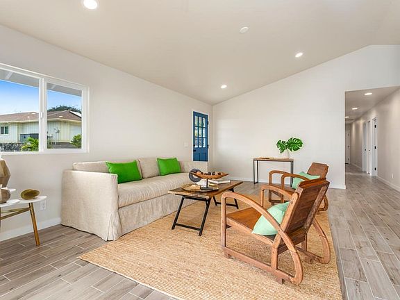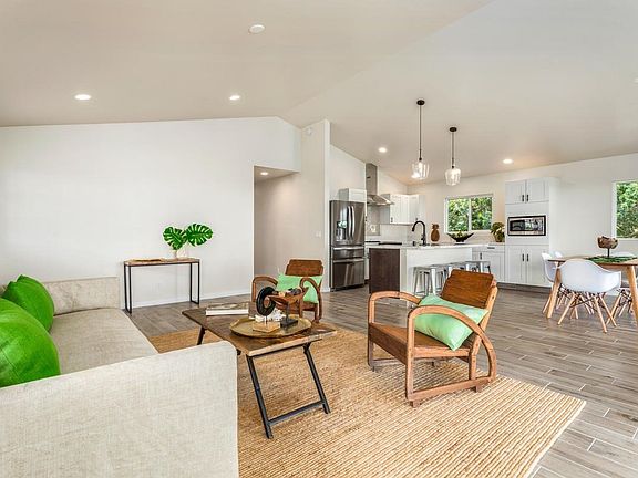 Brand New Construction!!!!!A rare find in the Kona market, this newly constructed home blends modern Hawaiian design with a practical floor plan to take advantage of the sweeping coastline and ocean views that define Hawaii living. This four bedroom home consist of three bedrooms and two bathrooms in the main part of the home. As well as a large, fourth bedroom and bathroom with its own separate entrance that can be used as a game room, office, fourth bedroom or workshop. The open floor plan allows for easy entertaining. The kitchen living and dining areas are all flow seamlessly. From the open living area step onto the lanai where you can enjoy Hawaiian breezes, ocean views and year round sunsets. Elegant finishes such as quartz countertops, stainless steel appliances and custom designed tile work create visual interest in the Kitchen and bathrooms. You'll also find vaulted ceilings and tile floors. The master bedroom is a relaxing space with a walk in closet and large glass sliding doors for additional light. Charming barn doors grace the entry to the master bathroom with a double vanity, zero threshold shower and soaking tub. Located at a cool elevation in a newer subdivision just 5 minutes from the airport and 15 minutes from downtown Kona.