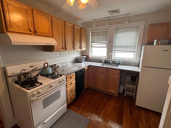 Absolutely charming One bedroom apartment in multi family home - 1/2 mile walk to commuter rail in Waverley Square and minutes to busline to Harvard - Mint condition one bedroom, three room - Natural woodwork in living room - Ceiling fans in all 3 rooms - Hardwood floors throughout, including kitchen! - Newer maple cabinet kitchen with granite counters, gas stove, refrigerator, dishwasher/disposal - Central A/C - Built in breakfast nook - Modern bath - Gas heat, hot water, and cooking (not included in rent) - Coin op laundry and Storage in basement - Small yard & patio - Off street parking for one car - Quiet residential neighborhood - Cat Ok - Tenant pays Heat (gas) and electricity -