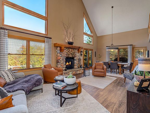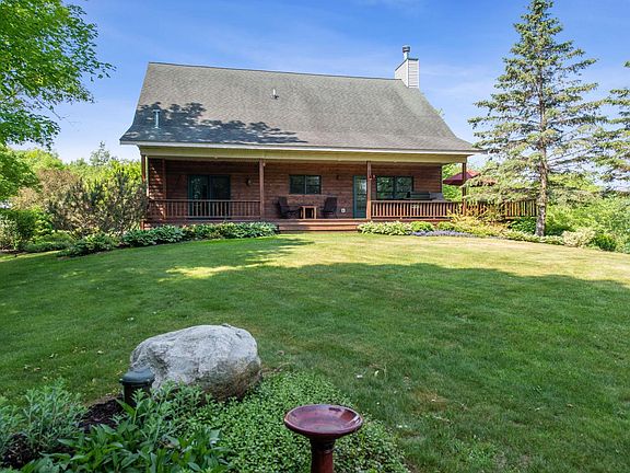 You won't find a more private and scenic setting than the 10 acres for this beautiful 3 bedroom 4 bath home. Home includes spectacular vaulted living/dining room area with fireplace. Updated kitchen with quartz countertops and island. Large main floor bedroom with en suite bath and two walk in closets. New LVP flooring throughout the main level. Two upper level bedrooms with loft area and full bath. Lower level features your own sauna and walk-in shower, family room and den. Deck, patio, front and back porches to enjoy the views and peace and quiet. 1/4 mile from Wildwood Trail-7 mile walking and biking path. Outside wood furnace gives you the option to save on gas costs. 32x40 garage and additional 24x32 storage shed. New shingles on house and garage. Don't miss your opportunity to own this wonderful country home!