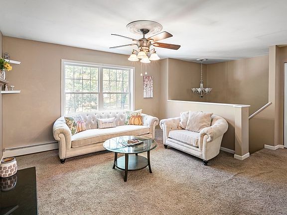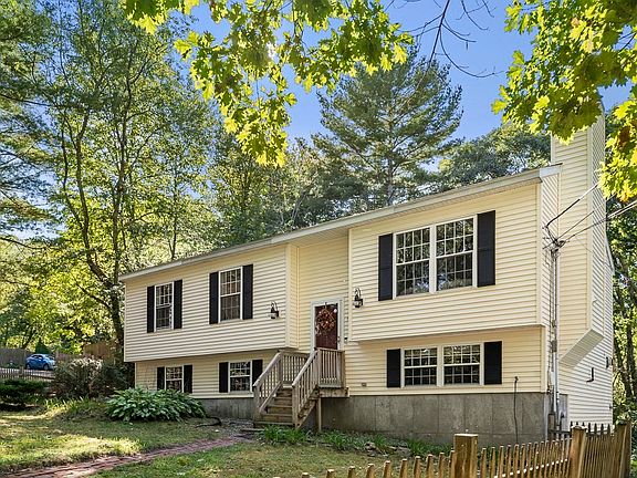 Cheery 3BR, 2.5 bath split-level home w/great floor plan and in convenient location. Main level includes Living Room w/FP, spacious eat-in-kitchen w/abundant cabinets & large island, separate dining area, Main BR w/ensuite bathroom, 2 more BRs & additional full bath. Finished, walk out lower level includes large family room, exercise area, 13 x 12 bonus room w/closet & window, large laundry & mechanical room, and ½ bath that has potential to be enlarged to full bath. Several rooms could serve as home office. Excellent in-law potential in Lower Level including separate entrance through sliding doors. Terrific outdoor living & entertaining spaces featuring patio w/canopy, deck overlooking koi pond, and two fire rings. Ample off-street parking. 2020 roof. New masonry stairs. Shed. Title V has passed inspection. Minutes to Milford Center, shopping areas & restaurants, and very commuter friendly with easy access to 495.