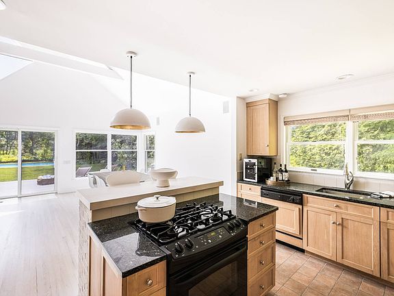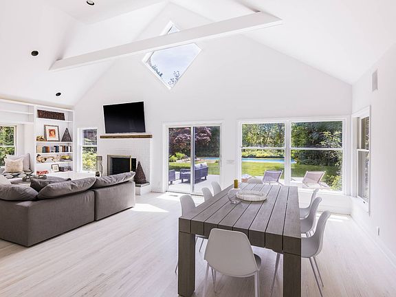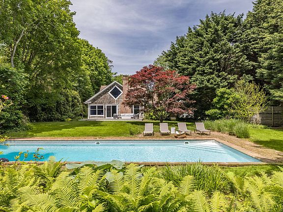 Rental Registration #: 24-958 Located on a long flag lot off of Accabonac, this quiet and private setting offers the perfect retreat for the month of June or July. Recently purchased and reappointed, this three-bedroom two bath home offers an open floor plan with vaulted double-height ceilings in the living room and dining area. There are two first-floor bedrooms and a full bath. Upstairs find the primary suite, with a wall of windows overlooking the grounds, and including a beautifully renovated bathroom. Multiple windows let the light flood in. The primary bedroom has a vaulted ceiling and overlooks a generous side yard, and includes a large walk-in closet. The large lower level has a laundry and storage space. Outdoors relax on the newly built deck or enjoy the in-ground heated pool set amid lush, beautifully landscaped grounds. There is also a detached two-car garage which has been set up as a game room. Located just a short distance to the center to East Hampton Village easily accessible by the sidewalk.