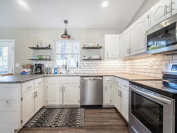 2 car oversize garage with opener and 2017 insulated garage door, fenced back yard backing to trees. 21x10 deck, stainless steel kitchen appliances, stainless sink and faucet 2020, all flooring 2019, roof 2019, 2017 AC/Furnace, hot water heater, 2019 bathroom vanities, light fixtures replaced, brick gas fireplace, family room, rough in for bath, French door to deck 2017, cathedral ceilings, open floor plan. Kitchen with center island and breakfast bar, ceramic back splash. Close to town and highway access!