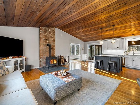 Discover privacy and space on 3.17acres at 73 Airline Road, just minutes to Clinton or Madison. The upper level of this bright and spacious raised ranch features 3 bedrooms, an office, and 2 full baths. On the main level, there is a complete 1-bedroom apartment with its own laundry and full bath. The home boasts hardwood floors throughout and a beautiful kitchen with GE Profile appliances, granite counters, a great center island, and an open kitchen/living room with vaulted ceilings that delivers a warm, inviting place to be together. Heating bills are low with toasty wood stoves, and the seller has left multiple cords of wood for free heating. The formal dining room is perfect for holidays, and the three-season porch off the kitchen overlooks the expansive backyard. The spacious primary bedroom is set apart from the other bedrooms for privacy, and a nicely updated bath completes the upper level. The first level-with its own (no stairs) private entrance-can be upgraded to a permitted accessory apartment, and is currently set up as a large in-law apartment with a kitchen, living room, full bath, and a big bedroom with sliders leading to a covered porch. There is a second wood-stove downstairs, a new roof, and an updated water treatment system for crystal-clear drinking water. The property also includes a beautiful lawn, fire pit area, and a 2-car garage. This move-in-ready home is available to make your own today. Please DO NOT enter driveway without a confirmed showing. Listed house, #73, does own the driveway, but there is one other house at the end of the driveway that has a ROW.