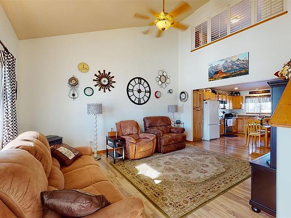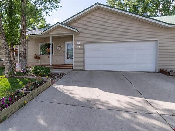 Curecanti Townhomes is a well established association 5 minutes from downtown Gunnison. HOA dues are $175.00 per month providing lawn maintenance, trash service, exterior insurance. Spectacular setting with irrigated grassy lawns, raised flower beds, mature trees, fenced back yard. paved streets and driveways all set with ease of living for the homeowner. You will enjoy the south-facing front yard and deck as you experience the warmth and glow of evening sunsets. The main floor is cozy with a spacious living room, pellet stove, maple wood laminate floors, and vaulted ceilings. The kitchen is the heart of any home and you will love this eat-in kitchen with walnut cabinets, pantry, built-in desk and file cabinet to entertain family and friends. The back door leads to a well manicured yard that is mowed by the HOA with fenced area for your furry friends. There is a main level primary bedroom suite with jacuzzi tub, dual closets and abundant sunshine from an oversized window. A guest powder bath and laundry room complete the main level. There are two bedrooms on the second level and full bath. Bonus storage space is just off the bedroom on the second level that gives you plenty of space for your seasonal items and toys. The two car attached garage has 3 walls of cabinetry and shelving. This is a beautiful property perfect for a first time homeowner or the perfect lock and leave for a second homeowner. Gunnison is home to Western Colorado University, Gunnison Jetport for easy travel and home to some of the best recreational opportunities in the valley. Dos Rios Golf Club is a short drive with Blue Mesa reservoir with miles of fishing on streams and rivers close by. There is a RING doorbell on the front door.