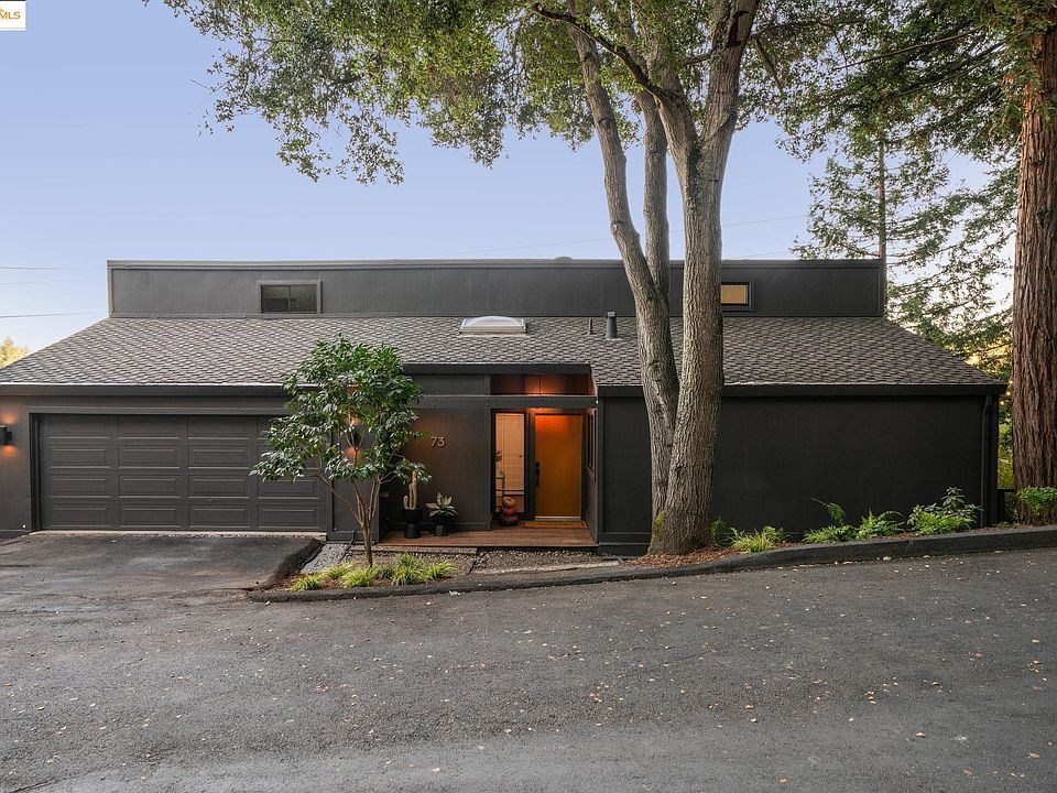Serene mid-century home nestled beneath grand oak trees! Ideally located blocks from Orinda Village, BART, Oak Springs Pool, Peet’s, the Orinda Theatre and parks. This home also benefits from Orinda's award-winning schools—among the best in the state. Easy SF Commute!. Home features large windows and doors that frame peaceful hillside views, creating a seamless connection between indoors and outdoors. The entry & living room feature vaulted ceilings, a cozy fireplace and an open modern staircase. The open floor plan allows for easy flow, with large sliding doors leading to decks perfect for entertaining or dining under the stars. Home features 3 bedrooms and 2 bathrooms. Level entry from garage with access to living, dining, kitchen and bathroom. Lower level features 3 bedrooms, bathroom and garden access. A spacious garage includes room for a workbench and an additional loft for extra storage. The expansive lot is ready to be transformed into your own magical garden. Come See!