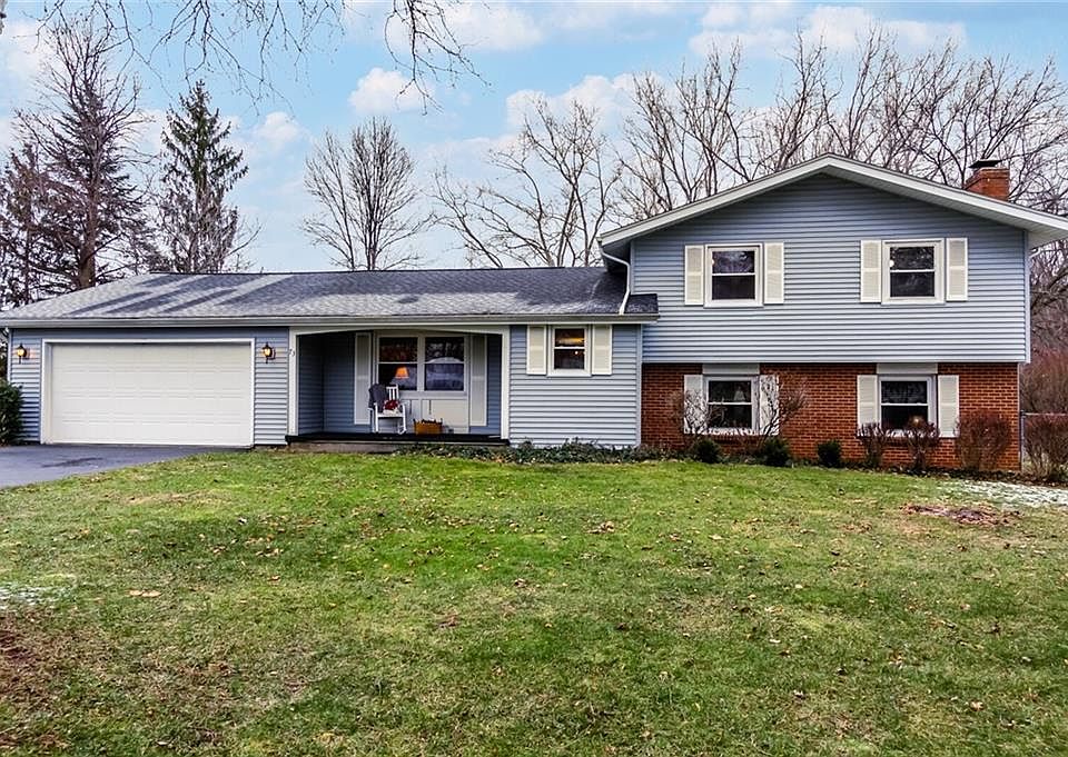 4 Bed, 2 Bath Split, convenient location, Pittsford mailing with Henrietta taxes/schools. Bright home welcomes you to the open concept Living and Dining on main level. Cozy Eat In Kitchen off dining room, new appliances, pantry storage. Second level includes 3 spacious bedrooms and updated full bath, large closets. Terrace level includes walk out access to the fenced in yard. Large family room with wood burning fireplace. Fourth bedroom and full bath completes this level. The basement level is partially finished and includes work shop area with dry utility sink. Large two car garage opens to unheated mudroom with laundry. Oversized 12x20 pressure treated deck. Shed for added storage. Home has been updated within the past 5 years to include new tear off roof, vinyl replacement windows and siding. Hardwoods were refinished, home was painted within the last 3 years. New kitchen appliances ('19-20), Newer Washer/Dryer. Borders access to 3 acres of town maintained forever wild. A MUST see!