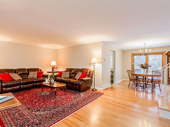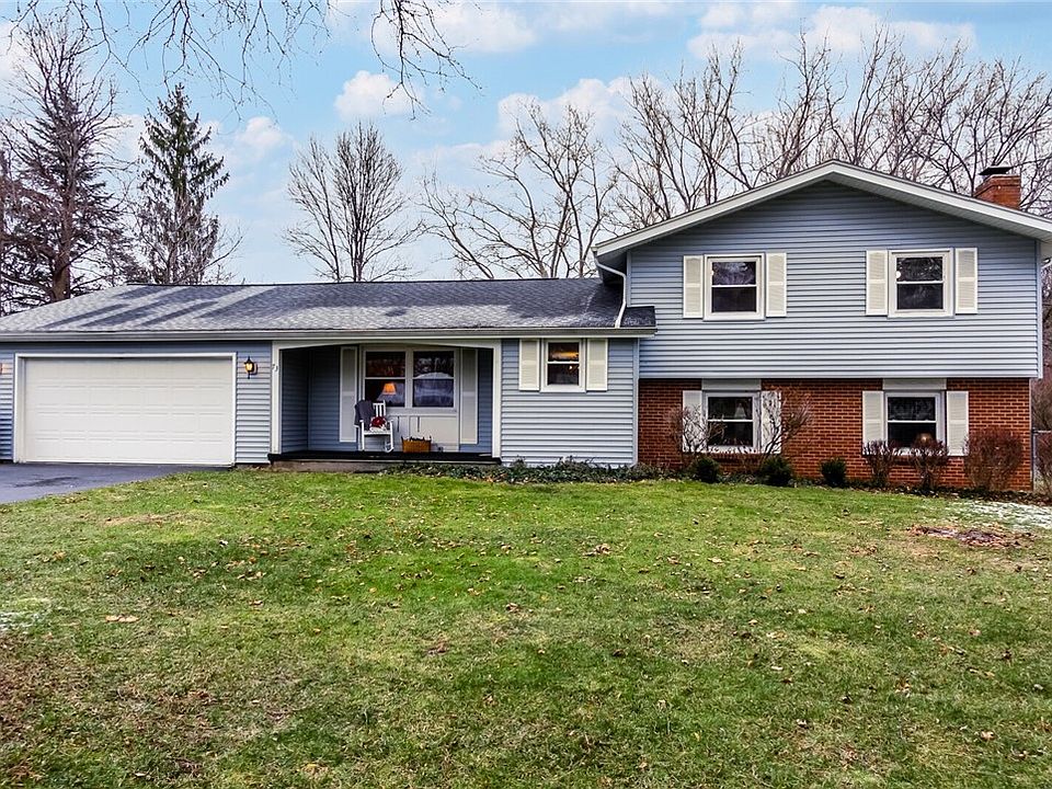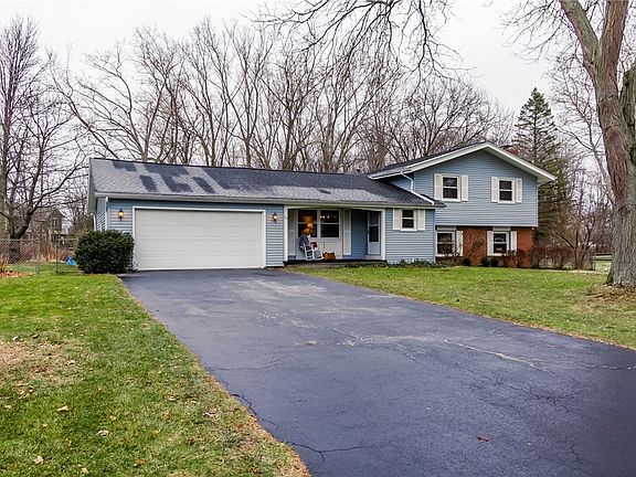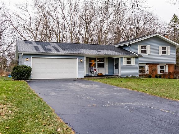 4 Bed, 2 Bath Split, convenient location, Pittsford mailing with Henrietta taxes/schools. Bright home welcomes you to the open concept Living and Dining on main level. Cozy Eat In Kitchen off dining room, new appliances, pantry storage. Second level includes 3 spacious bedrooms and updated full bath, large closets. Terrace level includes walk out access to the fenced in yard. Large family room with wood burning fireplace. Fourth bedroom and full bath completes this level. The basement level is partially finished and includes work shop area with dry utility sink. Large two car garage opens to unheated mudroom with laundry. Oversized 12x20 pressure treated deck. Shed for added storage. Home has been updated within the past 5 years to include new tear off roof, vinyl replacement windows and siding. Hardwoods were refinished, home was painted within the last 3 years. New kitchen appliances ('19-20), Newer Washer/Dryer. Borders access to 3 acres of town maintained forever wild. A MUST see!