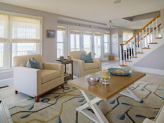 OPEN HOUSE SUN 9/23 CANCELED. THE BEACH HOUSE!! Sea forever from this Spectacular four bedroom, four bath home tucked safely behind dunes with miles of sandy beach out your front door. Open floor plan with chef's kitchen, large family room/ home office with built-in cabinets, surround sound. Formal living room with wood burning fireplace wall to wall windows to take in the fabulous and ever-changing ocean views. Large master suite with bath, step out onto your balcony for morning coffee.to take in the view. Third floor offers a large great room perfect for rumpus room, theater room, extra sleeping space for guests. Wrap around deck with Gazebo for your summer entertaining both in the front and back of the house. Gas grill piped in from the house and three season porch on the back deck. Additional first-floor room with utilities, perfect for crafts, storage. Outdoor shower to wash off the days sand and salt. A carport offers the perfect place to drop your beach chairs. Welcome, Home!