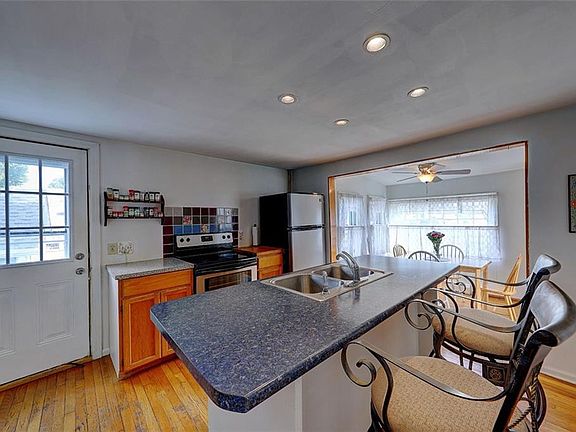 This charming home is set on a lovely fenced-in lot conveniently located close to many amenities in Cranston. Inside, you can sit at the large island in the updated kitchen featuring stainless steel appliances and an exposed brick accent, or around the table in the adjoining dining room. The quiet sitting room opens up directly to the formal living room where plenty of natural light comes in through the glass slider. Through this door is the rear deck that looks out over the expansive private yard, giving you an ideal perch to enjoy an alfresco meal. Back inside, completing the main level is a full bath, while upstairs are two charming bedrooms. This home is a just a few miles from all the great restaurants and shops in both Garden City and Chapel View. Minutes away is Roger Williams Park, which is home to a renowned zoo, the Carousel Village, and miles of scenic walking paths. The nearby highway makes it very easy to commute to Providence and behold all of the award-winning restaurants, venues, and events, like Waterfire.