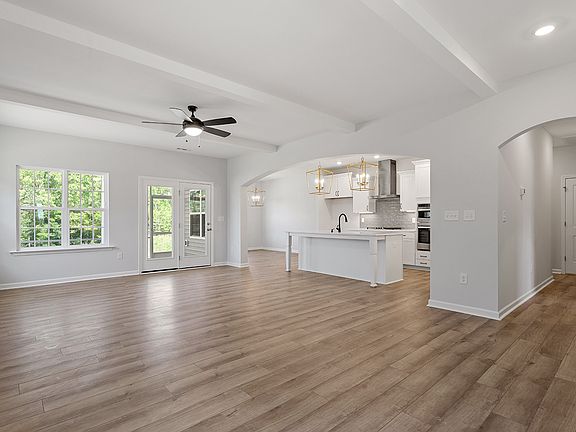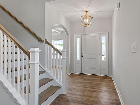 This floorplan has a definite "wow" factor! The three-bedroom, two-and-one-half-bathroom home has a primary bedroom on the first floor. Upon entrance to the home, you will find a formal dining room with a gorgeous, coffered ceiling. Make your way through the arched openings to find a truly spectacular kitchen with loads of counter space, including a tremendous island. The kitchen opens to the great room, which comes included with beams on the ceiling. The eat-in area is a great spot for gathering and is just off the kitchen, making dinner parties a breeze! You will also find a 10x16 covered porch just off of the family room, making this a perfect spot to sip on your morning coffee. Tucked away in its own little oasis, you will find the primary bedroom. The primary has a tray ceiling and a fantastic bathroom with dual vanities, a water closet, a linen closet, and an oversized walk-in tiled shower. Let's not forget the spacious walk-in closet! On the second floor, there are two additional bedrooms with walk-in closets, a loft, and a floored storage area. Pricing is reflective of structural options only.