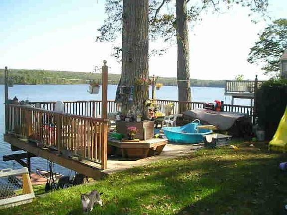 SHORT SALE! SUBJECT TO BANK APPROVAL. SWEEPING LAKE VIEWS-2 BDRM RANCH, DECK, JACUZZI,DOCK, NEEDS WORK!