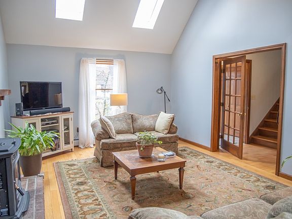 Lovely Cape-style home located in picturesque Somers, Connecticut. This home features gorgeous natural lighting & hardwood floors throughout. In the living room you'll find a brick accent fireplace with a cathedral ceiling, skylights & pellet stove. Enjoy meals in the dining room or in the eat-in kitchen featuring granite counter-tops, tile backsplash, & stainless steel appliances. Off the kitchen is the half bath with a closet washer/dryer. The first floor also features a wonderful master suite including a master bath with double vanity sinks & a large tiled shower. The second floor is comprised of 2 generous sized bedrooms with hardwood flooring, the second full bath featuring heated floors, & a cozy reading nook! This home sits on over an acre of land & offers a wonderful opportunity for bonus space in the large lofted barn out in the backyard. Home also includes a whole house generator. Minutes from the Scantic River walk.