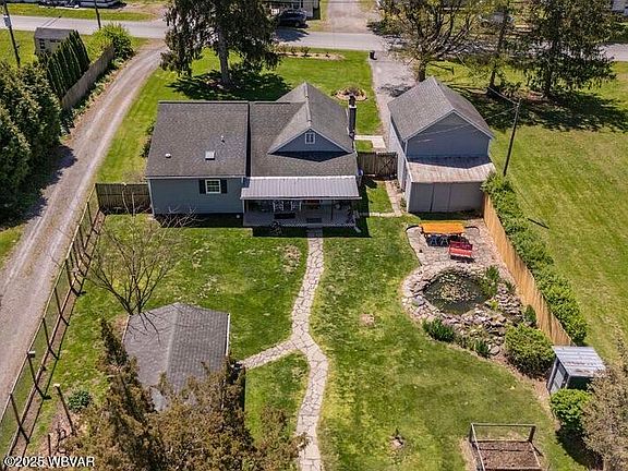 One-level living just outside of Hughesville on 2 acres, close to parks & schools-country charm with convenience! Open-concept living with 3 BR, 2 BA & a lower level family room in which to spread out. Sit on the covered rear deck & view the fenced-in yard with slate patio, pond with waterfall, fire pit on a brick patio, & raised garden beds. There is a screened-in pavilion that can be used year-round-compete with woodstove. The property boasts blueberry, blackberry & raspberry bushes along with grapevines & an asparagus patch.Oh, there's more! TWO detached garages--one is an oversized single car garage with floored second floor; the other is a 4 car (40 x 24) garage. Plenty of storage both in the home & garages. Settlement can occur 7/15/2025 or after. Don't wait too long..