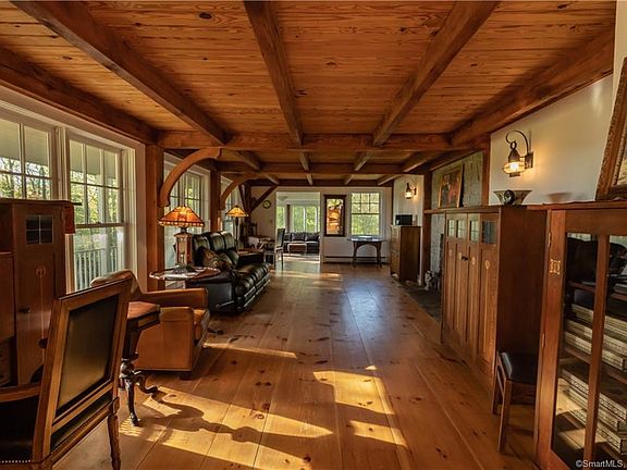 Spectacular long views and privacy abound with this fabulous post and beam home. Located on over 27 hilltop acres in Beautiful Woodstock Connecticut. The current owner has completed numerous material improvements including a new roof, new chimney, new Buderus furnace, new appliances, new Generac whole house generator, new gutters, new garage doors, new central AC, new fencing and much, much, more The home offers many high quality features including wood floors, beamed ceilings, and a cherry and granite kitchen. 4 bedrooms, 3.5 baths. The long granite breakfast bar accommodates a large number of guests. Fireplaces compliment the living room, guest bedroom and kitchen. The second floor great room features dramatic post and beam cathedral ceilings and a Palladian window. The living and dining room each face west and provide magnificent sunset views of Woodstock Hill, a church spire and farmland. An enclosed screened porch and an open 40 ft long porch offer more opportunities to enjoy these views. A perfect home for entertaining. Many Architecturally interesting rooms with flexible use. The property be a wonderful retreat location. There is a full master bedroom suite on the first floor, perfect one-floor living if needed. A second, newer master bedroom suite/bonus room located on the second floor with full bath and walk-in closet awaits the buyers choice of flooring and finishing. The long private driveway leads to this exceptional country estate. By appointment only.
