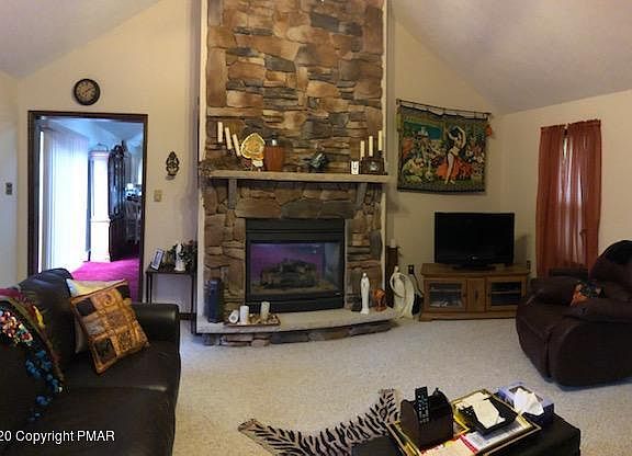 Your Pocono Retreat! Perfect Vacation Home! Home features 3 Bedroom 2 bathrooms, open concept living space, vaulted ceilings with dual propane fireplace in living and family room. Landscaped property with walking path in backyard, rear deck with hot tub, and storage shed. This home will go fast make an offer today!