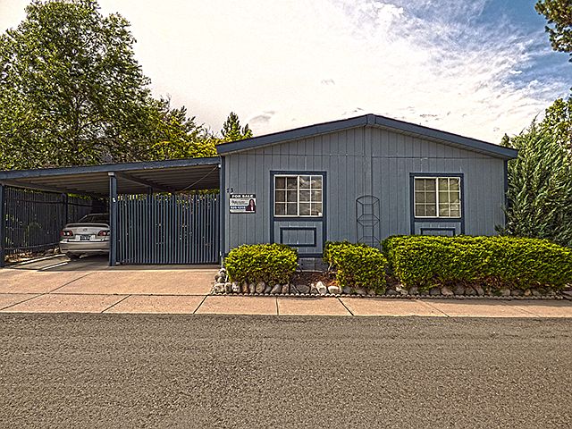 Cute home with newer wood flooring and open floor plan! The kitchen offers lots and lots of storage, all major appliances and a breakfast bar. Laundry room comes with washer and dryer. Ceilings are vaulted lending to the spacious, open feel. The spacious master is at the back of the home and has a walk in closet and private bath. The 2nd and 3rd bedrooms are good size. Nicely landscaped with mature trees. The side by side carport can house 2 cars or keep one side as the covered patio. Storage shed and fenced yard! Lot Rent: 656/mo | Includes: None