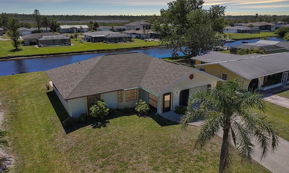 Charming 2-Bedroom Home on a Freshwater Canal – Boat Access & Golf Community! Discover your dream home in this vibrant golf community with boating access! This 2-bedroom, 2-bathroom home features a split floorplan for privacy, an open-concept design, and a bright, airy atmosphere. Key Features: New roof 2021. No WATER DAMAGE FROM HELENE OR MILTON! Spacious Florida Room – Relax with stunning canal views & watch the birds, Freshwater Canal Access – Perfect for boating & fishing from your backyard, Open-Concept Living – Ideal for entertaining & modern living, Eat-At Breakfast Bar – A great space to enjoy meals & conversation, Abundant Natural Light – Bright & welcoming throughout, Own Your Land – No lot rent, true homeownership or great rental! Community Perks for Just $190/Year HOA! 5 Golf Courses – Golf anytime! Clubhouse Dining – Breakfast, lunch, dinner & special events. Pickleball & Playground – Active & family-friendly. Walking Sidewalks – Enjoy a scenic stroll. RV & Boat Parking with RW Assoc- Extra space for your toys! This home is move-in ready and perfect for those who love golf, boating, and an active lifestyle. Home also comes with a portable generator and has a base flood of 10 feet.
