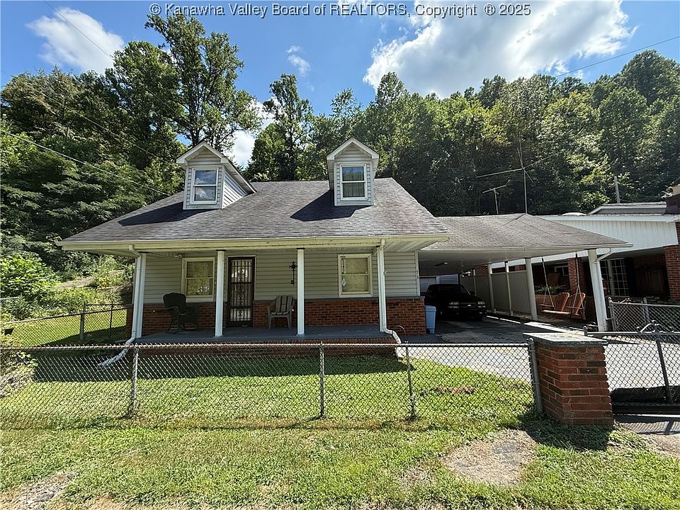 2 story brick & vinyl home. Living room, dining and kitchen, 1 bedroom down, 2 up, 2 baths 1 up and 1 down. Family room upstairs. Carport and detached garage.