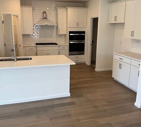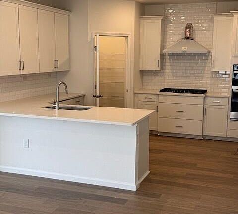 White quartz counter topsWooded preserveGourmet kitchenGas cooktopDouble sinksEn suiteLarge walk-in closet