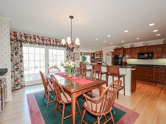 Welcome to this stunning 4 bedroom, brick front colonial situated on a sprawling 3-acre lot atop of Apple Orchard Estates. As you enter the home, you'll be greeted by a grand foyer that leads into a spacious and inviting living room, complete with a cozy fireplace and large windows that flood the space with natural light. The adjoining formal dining room is perfect for hosting dinner parties and family gatherings. The heart of the home is the open-concept kitchen and family room, which features beautiful hardwood floors, granite countertops, and plenty of cabinet space. The family room boasts another fireplace, making it the ideal spot for relaxation and entertainment. Completing the first floor you will find a stunning and elegant home office, perfect for those who need to work from home and a lovely 3-season porch that allows for enjoying the outdoors without having to deal with the elements. Upstairs, you'll find four generously sized bedrooms, including a luxurious master suite with a spa-like bathroom and walk-in closet. The remaining bedrooms share two bathrooms and have ample closet storage. Outside, the expansive lot provides plenty of room for activities and entertaining, with a large patio and beautiful landscaping. The handmade stone walls surrounding the property adds to the home's curb appeal. Located in a desirable neighborhood, with top-rated schools. Don't miss your chance to make this stunning property your dream home.