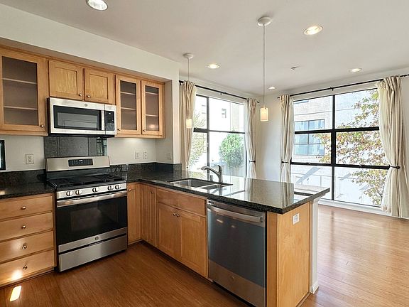 Discover a modern oasis nestled at the crossroads of North Oakland, Berkeley, and Emeryville. This impeccable 2-bedroom, 2.5-bathroom condo spans approximately 1,197 sq ft of sophisticated living space. Infused with natural light, this townhouse-style haven boasts a thoughtfully designed layout that harmoniously blends style and functionality. Step into a realm of culinary delight with an open-concept kitchen adorned with sleek stone countertops, abundant cabinetry, and a convenient breakfast bar. The kitchen effortlessly flows into an expansive dining area, creating the perfect setting for both intimate gatherings and grand soirees. Sunlight warmly enters through floor-to-ceiling windows and a charming Juliet balcony illuminates the main floor with a warm ambiance. Indulge in the convenience of an attached 2-car garage, central heating, and in-unit laundry all enhancing your modern lifestyle. Embrace the lush surroundings both inside and out, with a seamless connection to the vibrant neighborhood. Explore a diverse array of dining experiences and boutique shops just a leisurely stroll away. For the outdoor enthusiasts, the adjacent Greenway beckons, inviting you to embark on invigorating hikes or leisurely bike rides. Fitness aficionados can conveniently access the City Sports Club just one block from your doorstep. Streamline your daily commute with Transbay bus service and the Emery-Go-Round free shuttle to BART, providing unparalleled ease when traversing between the East Bay and the City. Utilities included: None Utilities not included: All Pets: Pets welcome with an additional $50/month Laundry: In-unit washer & dryer Lease term: 1-year lease Parking: 2-car attached garage Appliances: Refrigerator, stove, dishwasher Flooring: LVP, carpet Application fee: $50 Heating: Central Cooling: None Auguste Vende Broker DRE#02090399 All East Bay Properties DRE#01516255 Oakland law prohibits rental discrimination based on criminal history per the Ronald V. Dellums and Simarashe Sherry Fair Chance Access to Housing Ordinance No 13581 C.M.S. (O.M.C. 8.25) *We are an Equal Opportunity Housing Provider and follow all fair housing laws.