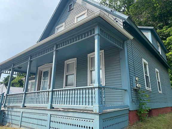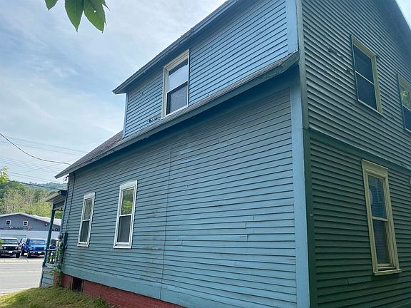 This 5 bedroom, 2 bathroom home on .5 acres could be a large single family home or a duplex with a 1-2 bedroom apartment on the second floor. The first floor has a large kitchen, a large central living room, a 3/4 bath, 2 bedrooms, and a sunroom (or a 3rd bedroom). Upstairs has a second kitchen, and 3 rooms that could be bedrooms or make one a living room, one an office, and one a bedroom plus a full bathroom. The home is in the General Business district in town so has lots of potential if one was considering a commercial space or home business. There is a very large 3 bay two-story garage attached with lots of additional space. This foreclosure is being sold as-is. All information is from public records and should be verified by buyer.