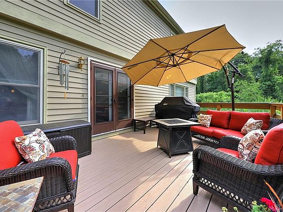 Located in the "Colonial Hill" section of Hallmark Hill, this absolutely stunning extra large end unit Townhouse on cul-de-sac thinks it's a house! The main level features an entry foyer with bamboo floor, gorgeous updated kitchen with bamboo floor, newer SS appliances, granite counters and tile back splash, half bath, dining room with hardwood floor, large living room with pellet stove fireplace insert and new french door to oversized deck with trex overlooking private & tranquil setting with garden area. The second floor features a huge bonus/family room with vaulted ceiling and skylight, master bedroom with full bath, 2nd bedroom and full bath in hall. The two bedrooms, hall and stairs to the second floor all have new carpeting. The third floor features a large loft style bedroom with attic access. There is direct access from the first floor to the 2 car tandem attached garage. Large unfinished basement. Brand new central air unit. Hallmark Hill is a beautifully maintained community with large in-ground pool, clubhouse and patio area. Convenient location to Route 15 and center of town. This unit is priced to sell quickly so don't delay or you will miss out!