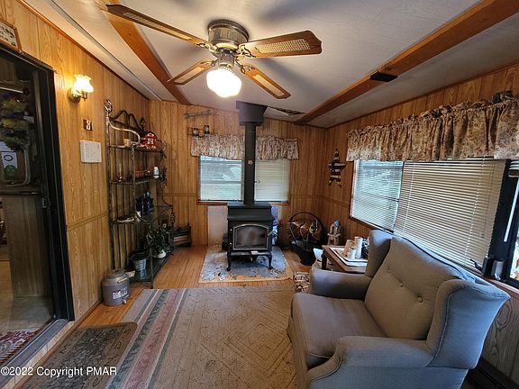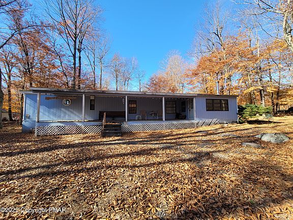 Cute Ranch style - manufactured home on a double lot in the heart of the Poconos! Live here year-round or enjoy for a get away. This home features 2 bedrooms, a full bathroom, an eat in kitchen, brand new hot water heater, and a garage to store all of your toys!