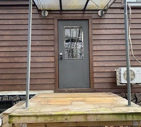 Hilltop cabin on 2.48 wooded acres. Cabin features 1 bedroom, 1 bath, kitchen, dining and living area. Upstairs sleeping loft overlooking living area. Cabin has 432 heated and cooled square feet. Full 2x4 wall construction. Wood and vinyl flooring on main floor with carpet in loft area. Metal roof with stained wood lap siding exterior. Separate storage building has electrical hookup and was used as home office space. Added features are a one car metal detached carport and Safe-T-Shelter underground storm shelter on site. Occupant had severe respiratory distress and felt that central ducts held dust, to eliminate dust he used numerous air conditioning units. It appears the central HVAC was never used. Regular Google or Apple maps will not put you at driveway to property. Please call agent for correct routing.