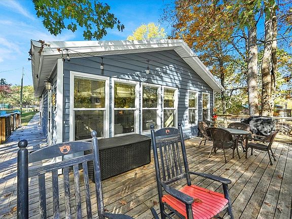 Welcome home to this charming 2 bd /1 ba cottage located on the waterfront of Smith Lake. Nestled among mature trees, this property is fenced and move in ready. The slope to the water is gentle and easy. The swim dock is adjustable to accommodate the seasonal water levels. Enjoy the beautiful waterfront scenery from the large open deck while entertaining friends and family or just enjoying your morning coffee. The living room boasts a wall of windows and a lovely wood burning fireplace. Ceramic tile throughout. The partially finished basement could easily be finished to provide more living space. There is a sliding glass door in the basement that opens outside to a covered patio area below the upper deck. This is a must see! Schedule to see it before it's gone. Buyer to verify all information.