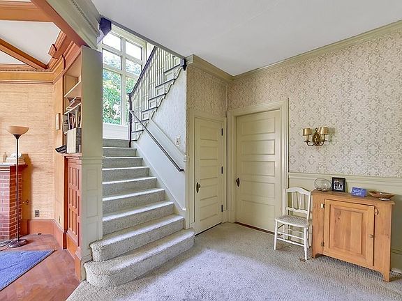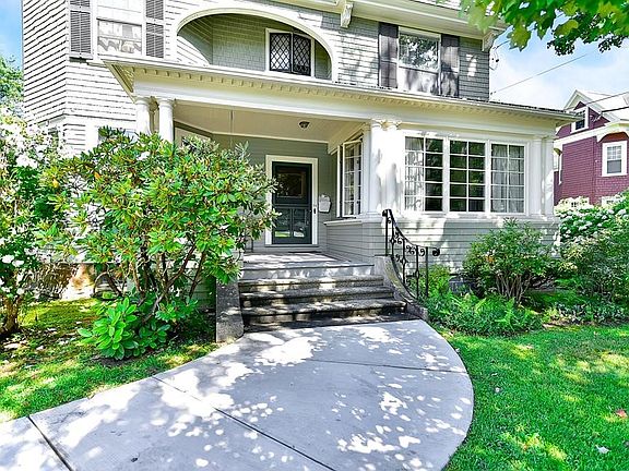 One of the most gracious homes with great curb appeal, located in the Highland Park neighborhood. Solidly built with wonderful architectural details throughout, such as curved archways, crown moldings, built Ins and much of the original hardware exists. The first floor has a large living room with a beautiful south facing window that allows light to pour in, a library with a fireplace, a formal dining room with a built in cabinet, and the eat in kitchen with butlers pantry and half bath. The stunning staircase leads to the second floor which has four spacious bedrooms and 2 full bathrooms. There is a walk up attic with 2 finished rooms. Walk out the basement level to the lovely private backyard and to the 3 car garage barn with storage above. Situated on just under an acre of lush landscaping and many flowering bushes. Certainly one of the best yards in the neighborhood!